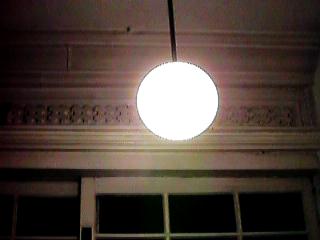 Right was hanged from circular celing. Right was very simple but muched to these ceiling and made warmth. Right was the lamp at passage. It was very simple, but it mached with white wall.