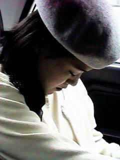 Natsue tried a hat, and was sleepy in the car.