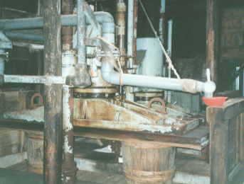原料を寝かせたものから、醤油を作るために搾る機械だったと思います。