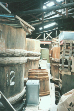いろいろな樽を、撮ってみました。この樽の中にはもちろん、建物の壁や柱、天井にも味噌を作るための菌が住み着いています。こうした菌によって味噌が作られるため、いろいろな味、香りがあるのです。