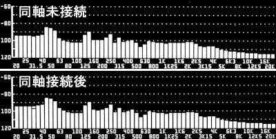 @同軸接続の有無で、TOS側のノイズレベルは全く変わりません。