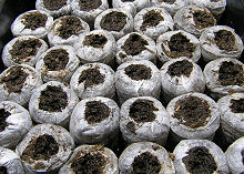 播種は、ジフィーセブンに行いました。 ジフィーセブン1個当たり多めですが3粒ほど播きました。 ジフィーセブンの培土を寄せて、種子が見えない程度の極軽い覆土をしました。 |