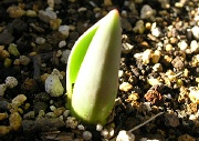 十分に低温に感応したのか、休眠が明け発芽を始めました。 液肥ハイポネックス5-5-5(N-P-K)1000倍を週1回施用しています。 |