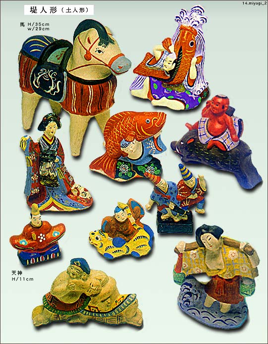 仙台:堤人形。仙台張り子。木ノ下駒。ぽんぽこ槍。蘇民将来。こけし。