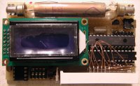| 基板表 左半分がガイガーカウンター、 右半分が外付け表示器。 運用時は LCD は取り外す。 (写真は開発途中の 16F886 版) |