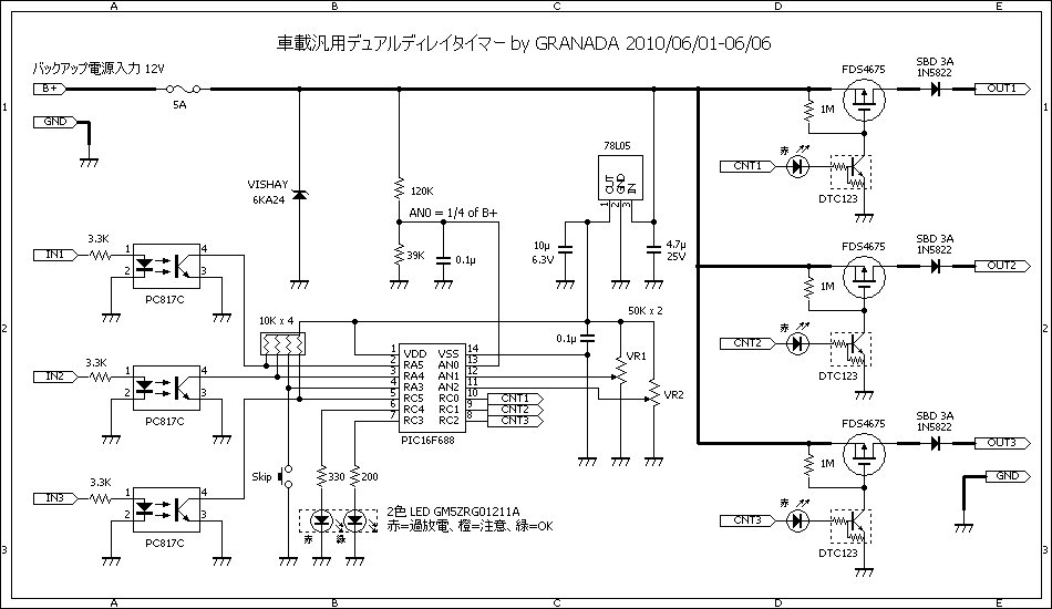 ・タイマーといえば定番の 555 を使った回路が考えられるが、今回は系統数も多く、遅延処理自体も複雑なため、PIC