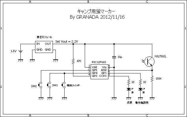 NiMH x 1 = 1.2V なので PIC を動かすためには昇圧が必要。ソーラーアクセントライトの昇圧回路をそのまま使って