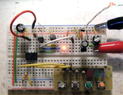 今回は超高輝度赤 LED+電流制限抵抗 2.2K とし、また点灯・消灯サイクルはデフォルトの