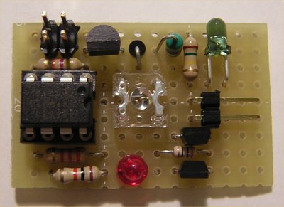 また明るさで自動的に ON/OFF するよう、フォトトランジスタを実装。明るさに対する感度を決めるプルダウン抵抗は