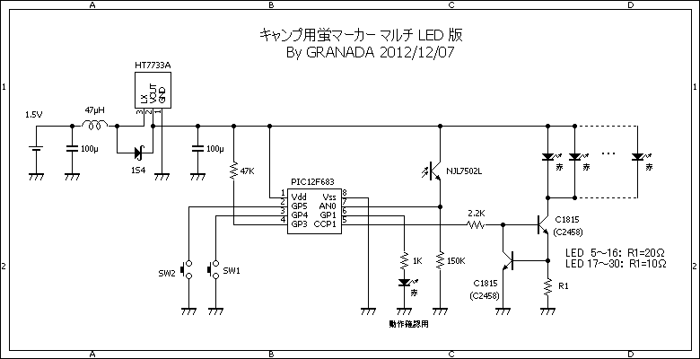 もともと 4.5V 仕様のものを 3.3V で使用しているためオリジナルより LED