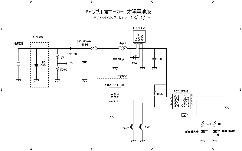 よって太陽電池とパラレルに 2.4V 程度のツェナーを入れておく方が望ましい。(管理人は