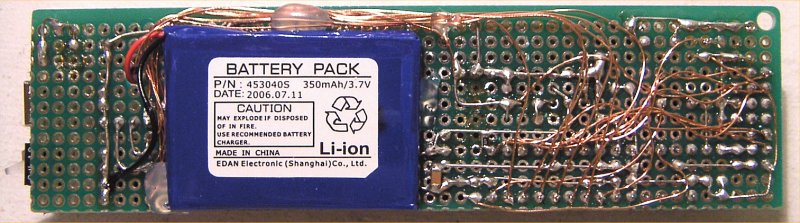 なお使用しているリチウムイオン電池 (350mAh) は秋葉の某店で \210 で投売りされているもの。充電回路を付けてもコストパフォーマンスは抜群だし、総消費電流が