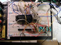 (1) 予想外のノイズ。PWM 由来のノイズは予想できたが、7 セグ LED のダイナミック点灯に由来するノイズはちと想定外であった。もっともトランジスタアレイを使用しなければそれほどノイズは出ないようなのだが・・・