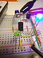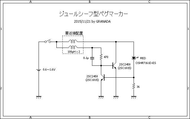 Thief 回路(ブロッキング発振回路)。0.5V 程度から動作するので今回の目的にはピッタリ。