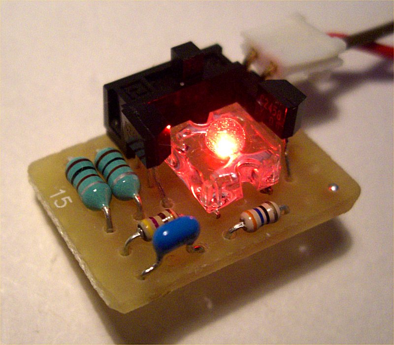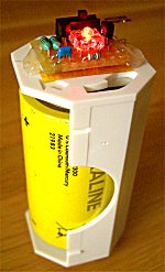 超高輝度 LED を使っているため、0.8V 程度の電池でも視認性は十分。