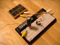 | まずはブレッドボードで動作確認。 56F キャパシタなら一晩でも余裕で動作 |