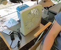 キャンプ上で使えるモバイル扇風機としてメジャーな製品に LOGOS の「どこでも扇風機」がある(その他