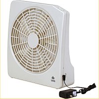 | LOGOS 「どこでも扇風機」 (写真は現行 2 way 電源モデル) |