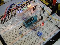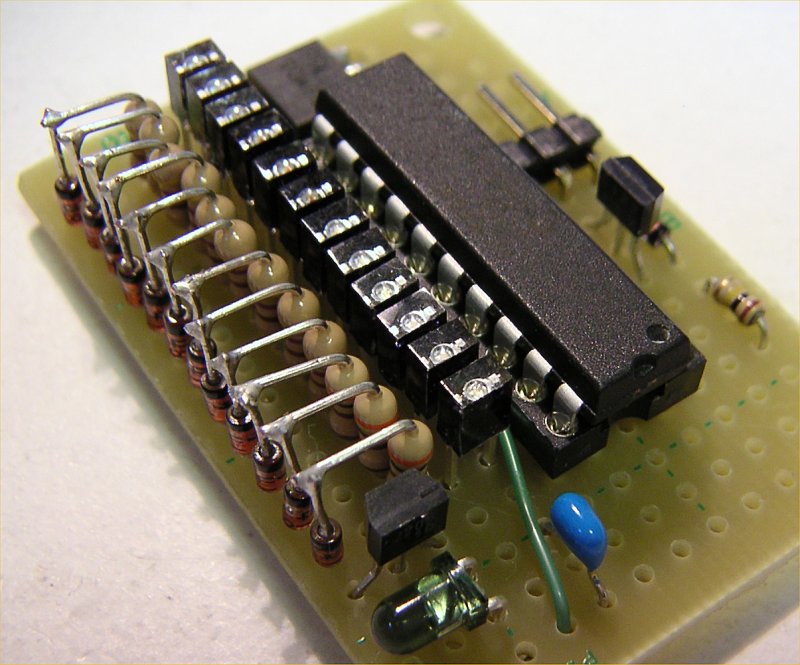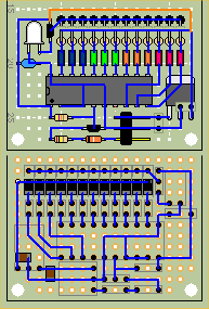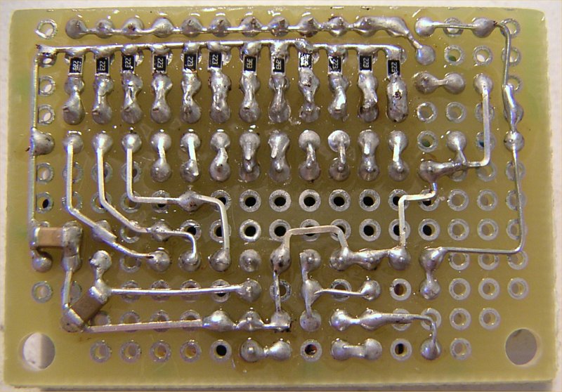 | まずはブレッドボードで動作確認 | 基板表。 ダイオードと抵抗は空中配線で 実装スペースを節約 |