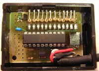 最終ケーシングの様子。 三端子レギュレーターにはフィルム 放熱シートを貼り付け、基板は ホットボンドで固定。 |