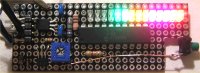 超高輝度 LED のおかげでパルス駆動でも 20mA 流せば真昼でも視認可能な Head Up Display (HUD) にできる(動画参照)。ただしピンク LED は他の色に比べて輝度が低めなので、ピンクだけ長めに点灯して全体の輝度を合わせている。もし他の LED を使用するなら輝度を現物で確かめながらのソース変更が必要。