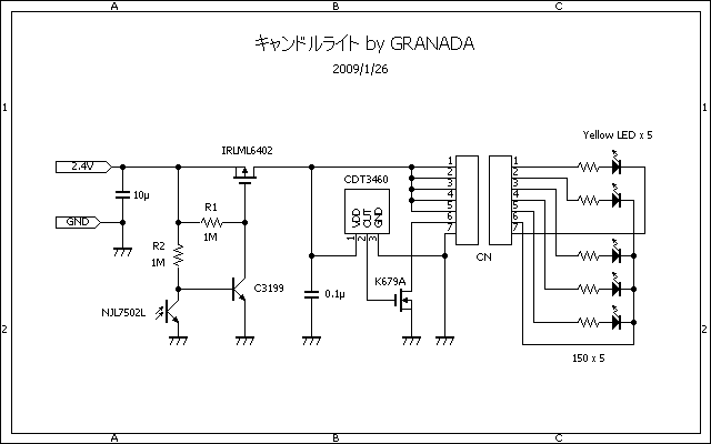 ブレッドボードでの仮組み状態ではうまく動いたのだが、いざ基板に実装すると、動作が不安定になってしまった。結局、キャンドルライト