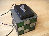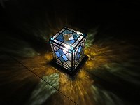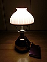 ステンドグラスランプ (二号機) 市販のステンドグラス(100V 仕様)をキャンプでも使えるようモバイルバッテリー駆動にし、さらに白色と電球色で点灯できるようにしたもの。 詳細はコチラ。 |