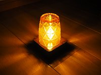 ステンドグラスランプ (初号機) 市販のステンドグラス(100V 仕様)をキャンプでも使えるようモバイルバッテリー点灯できるようにしたもの。 詳細はコチラ。 |