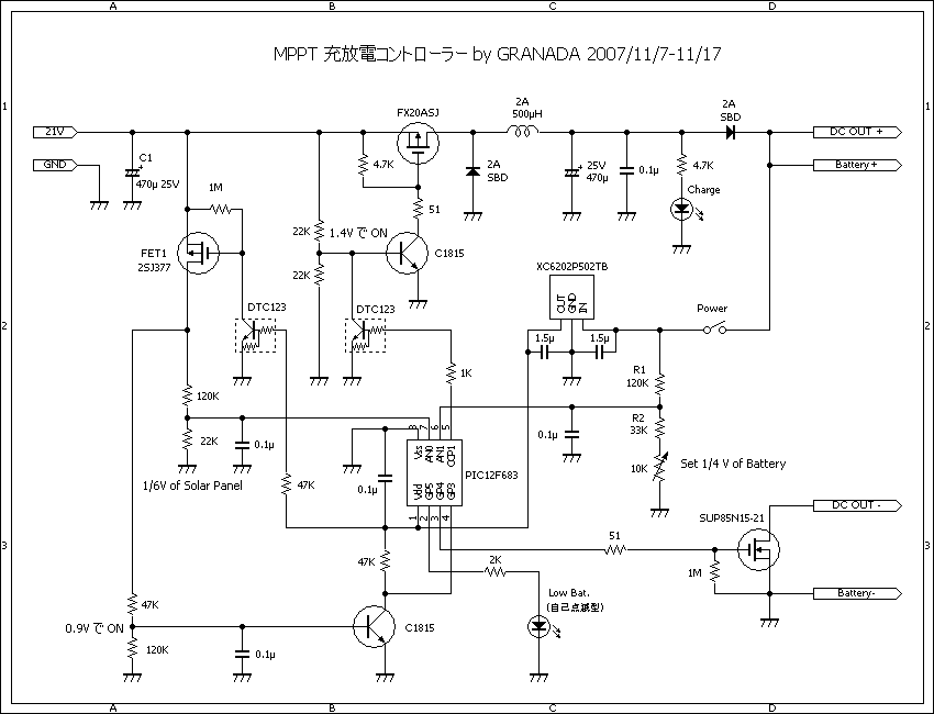 (*) 正確に言うと本コントローラー の電源 OFF 時で、SBD、FET、コイルを介して充電している。