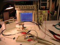 ある程度ブレッドボードで動作を確認した後、ユニバーサル基板上に試作して、秋の昼下がりに動作実験をしてみた。条件は以下の通り。