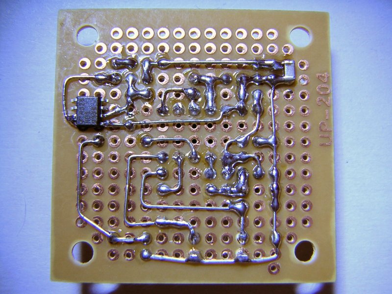 | 改良版・基板表。 リセット電圧底上げ用の 青LED はチップ品を裏面に実装 |
