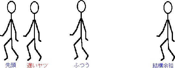 すると、前の人にピッタリくっついて歩いてしまうのです。 しかし、悲しいかな。いったん引き離されると、その差はドンドン広がってしまいます。