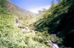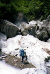 | 大ガランの直前。 | 正面は下シシボネ沢。本流は右に折れて大ゴルジュ帯。高巻きをする。 | ||||