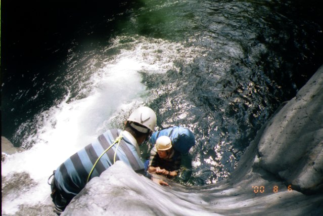 ニエ淵。取り付きで足が立たなかったので、ザイルで引き上げ。