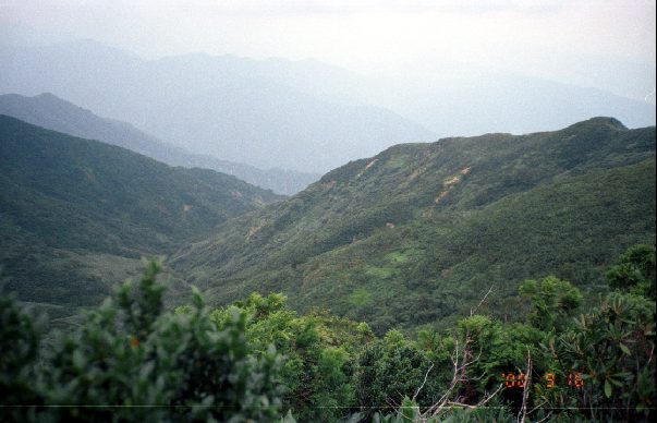 稜線上から展望した金山沢。右の尾根を下る。