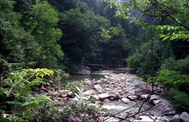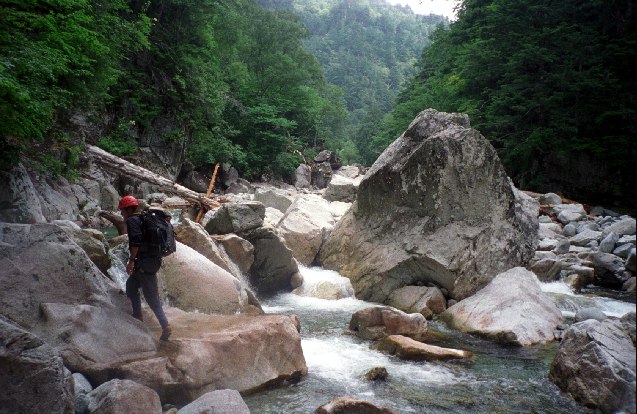 | 林道ゲート | 小倉谷出合 | 打込谷出合手前 入渓点。壊れた橋有り |