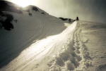 | 五輪尾根上部から見る朝日岳。爽快な斜面! |