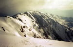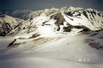 | 白馬主稜上部。この手前に幕営可能地有り。我々はこの上で幕営した。 | 白馬頂上直下から見た小蓮華岳 | 頂上直下から見た杓子岳 | |||