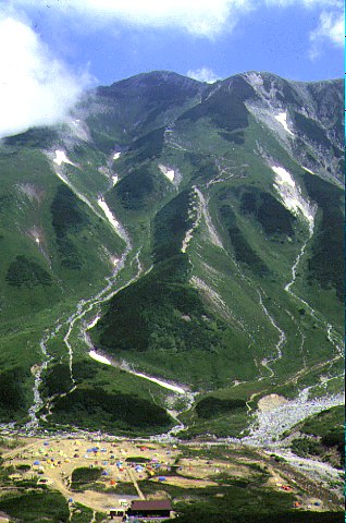 雷鳥平と雷鳥沢、別山乗越