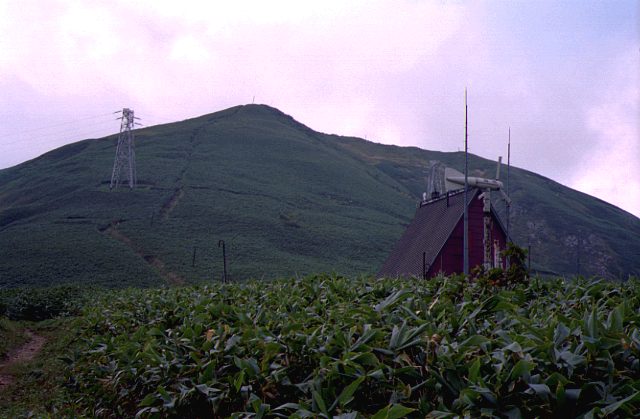 清水峠 電力会社の小屋( 宿泊不可) 清水峠から七ツ小屋山方面。