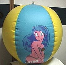 ご覧の様に比較的大きなビーチボールで、両サイドにラムのイラストがプリントされています。上記のエアバケツとほとんど時期的に差がない頃の懸賞賞品だったと思います。この頃、たて続けにサンデーの懸賞に当たった記憶があります。