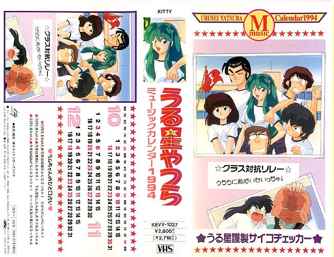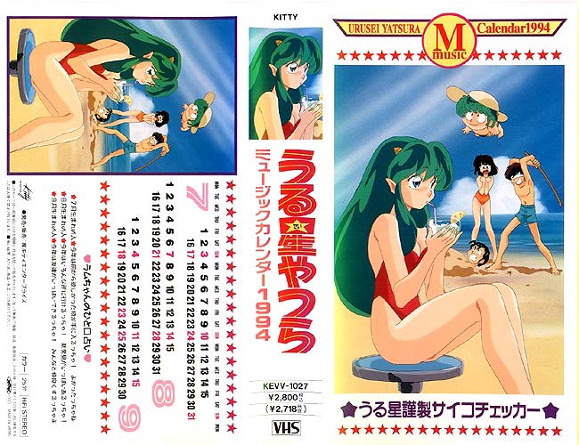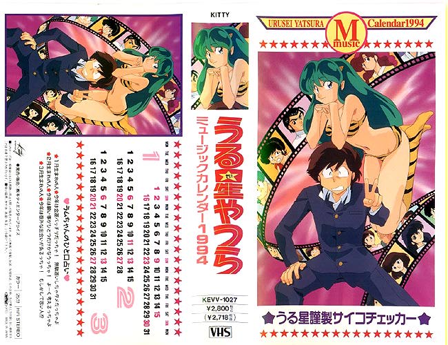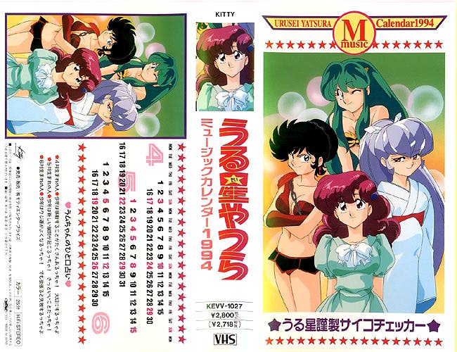 ☆VHSビデオテープ仕様のカレンダー ビデオテープのジャケットがカレンダーになっている。全4枚、25分。うる星やつら謹製サイコチェッカーとなっているが、詳細は不明。まさかビデオテープ仕様とは思わなかった(^_^;)。 データ提供協力:お雪ちゃん | |||