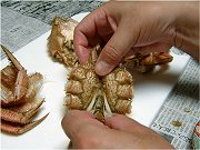 毛ガニの腹にある「ふんどし」はじゃまなので取り外します。