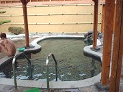 さっそく入る。お湯は無色透明、けっこう熱い。かすかに石油臭があるようだ。熱めのお湯なので体はぐんくん温まる。