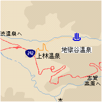 上信越自動車道の信州中野ICを降りて、志賀中野有料道路を通り国道292号線を志賀高原方向へ。沓野渋ICを降りて上林温泉に入る。上林スキー場へ向かう坂を登ると野猿公園の入り口に着く。そこから歩いて30分ほど。駐車場は20台ほど。
