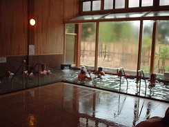 ![]() ■印象 市街からは離れているが国道に面して便利のよいところなので、かなり賑わっている。館内は最近の公共温泉らしく広々として清潔だ。さっそく浴室に向かう。 浴室は天井が高く、壁一面が広いガラス窓なので広々している。お湯は適温だ。分析表によると源泉は水沢薬師源泉、泉質はナトリウム−塩化物泉(食塩泉)、源泉の温度46.7度、蒸発残留物1358mgである。 ![]() 一方の浴室(今回は男湯)には、「月山自然水」を使用したひのき風呂がある。こちらは真湯だ。ひのきのすのこがちょっと滑りやすい。 設備が良いのに料金は格安だ。家族連れで来る人も多いようだ。風呂上がりに隣の月山銘水館で地ビールをのむのも良いだろう。お勧めする。 車椅子トイレや個室浴場もありバリアフリー対応だ。 |