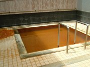 外にはヨモギ湯のジャグジーと源泉露天風呂がある。源泉露天風呂は赤茶色のお湯が溢れて、床が赤茶色に染まっている。周囲は高い壁で囲まれていて眺めはない。 お湯は熱めで、お湯は海水ほど塩辛い。浴槽の周囲にはトドになっている人がいる。天気がよいので気持ちよさそうだ。 シンプルな施設だが、低料金でプールやトレーニングジムも使える。家族連れには使い勝手が良いだろう。 |