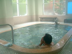 中央にタイルの浴槽があるシンプルで清潔な浴室だ。龍頭の湯口からとうとうとお湯が流れ込む。透明なお湯はとても気持ちよい。