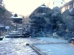 ![]() ■印象 ロビーからエレベーターを降りると旅館の裏玄関に着く。そこでサンダルを借りて温泉めぐりをすることになる。正面は湯小屋の玉子湯がある。訪問した日は初雪の後で、辺りがうっすら雪化粧していていやがうえにも雰囲気が良かった。 湯小屋の隣りに小さな源泉がある。小さな屋根で覆ってしめ縄が架かっている。大切にされていることがよく分かる。ここから硫黄に臭いがする。湧き出してすぐのお湯は透明だ。 ![]() 玉子湯内部 玉子湯の湯船は小さいが、ひなびた雰囲気がよい。お湯はそう熱くないが、白濁していて温泉らしい。なめてみるとかなり酸っぱい。泉質は硫黄泉(含石膏明ばん硫化水素泉)である。源泉の温度は47度、PHは2.7強い酸性だ。 ![]() 脱衣所右の天翔の湯 露天風呂はダイナミックな岩風呂だ。きれいに掃除されていて気持ちがよい。山の眺めもなかなかすばらしい。気に入ってずいぶん長湯してしまった。 じっくり濃い温泉を楽しめる。硫黄泉好きにはこたえられないだろう。 |