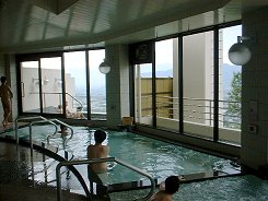 丘の上にある展望の温泉 ■概要 甲府盆地の東端にある勝沼は有名なぶどうの産地である。町の東側の小高い丘には町営ぶどうの丘公園がある。以前にもワインを楽しみに来たが、今回は温泉を楽しみに来てみた。 ぶどうの丘公園の南側、一番眺めのよい所に天空の湯がある。12角形、2階建てのユニークな建物だ。2000年3月開設でまだ新しい。1階は展望ラウンジ、2階が浴室になっている。 ![]() 浴室には、寝湯とミストサウナがあり、外に露天風呂がある。1階のラウンジはレストラン風だが、入浴後の休憩に利用できる。軽食もあるので湯上がりのビールやつまみも手に入る。 ![]() ■所在地 山梨県東山梨郡勝沼町菱山5093 TEL:0553−44−2111 FAX:0553−44−2341 |